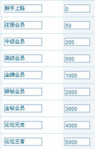 总积分=发帖数*0.1+精华帖数*10+在线时间(小时)*0.1+页面浏览量/1000+经验